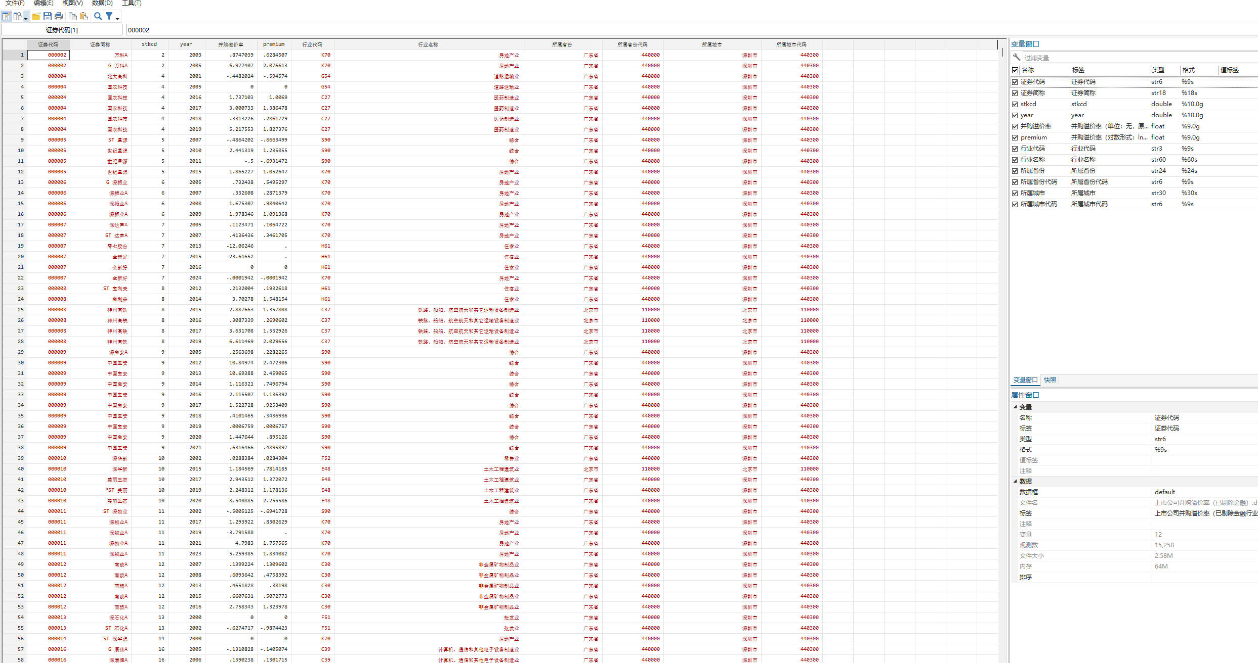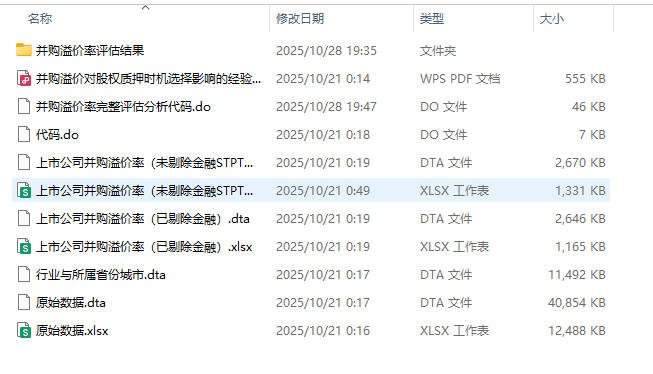 上市公司并购溢价率(已剔除金融).dta # 处理后的数据
