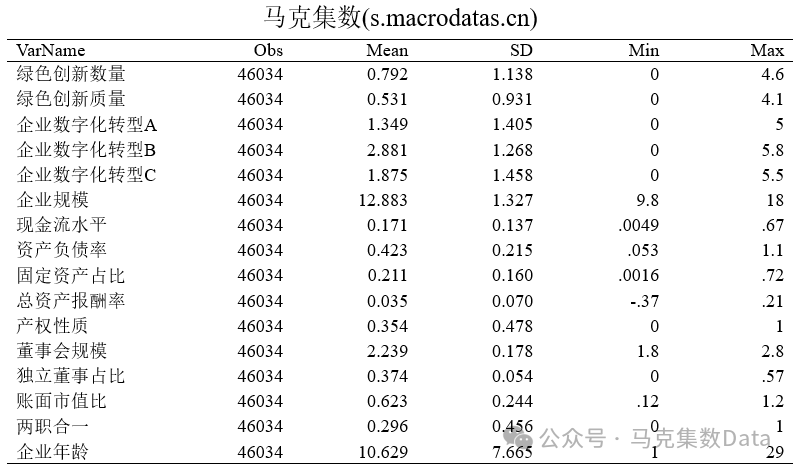 数据名称:企业数字化转型赋能绿色创新的效果与机制研究