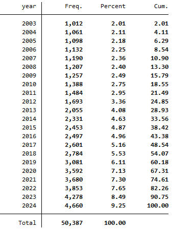 文件格式:Dta格式(使用Stata打开)、Xlsx格式(使用Excel打开)