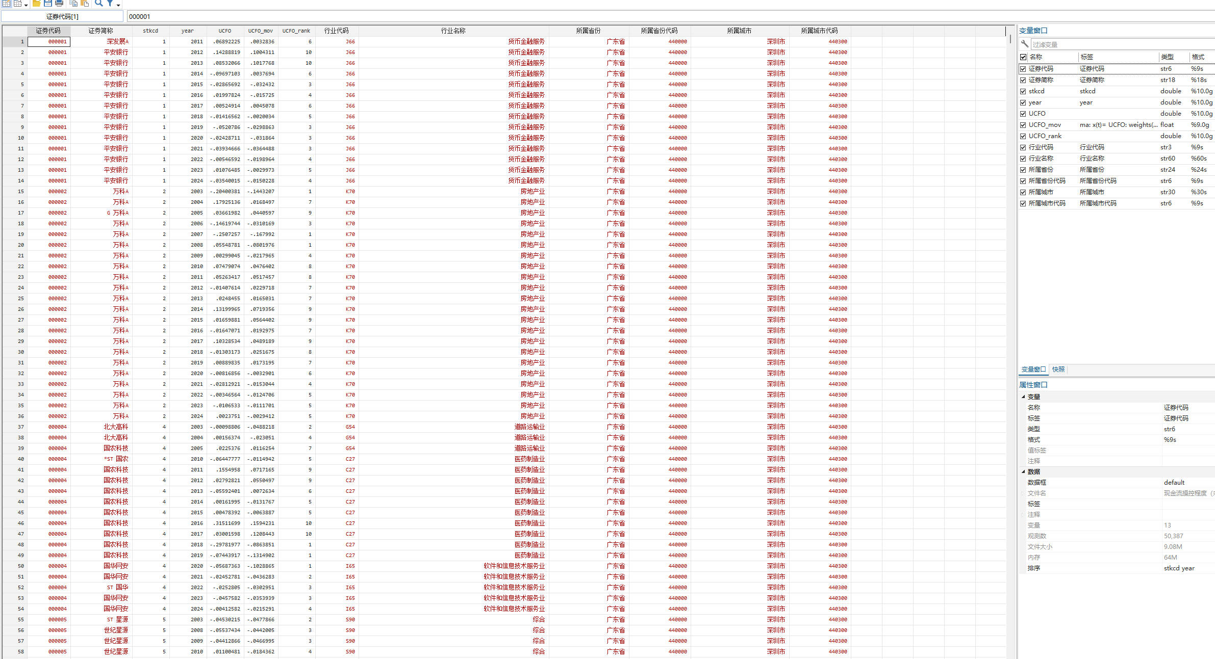 字段包含是否ST、PT的虚拟变量(以当年是否ST、PT为判断标准),示例剔除ST、*ST或PT类股票,如果不需要可以把对应代码删掉即可。