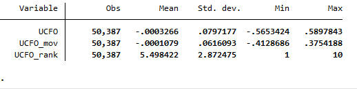 为了降低各变量之间的相对效应,对现金流操控程度采用分组度量。我们将现金流操控程度按照年度排序,然后将其十等分,构建了现金流操控的分组变量(UCFO_rank),以度量现金流操控程度。