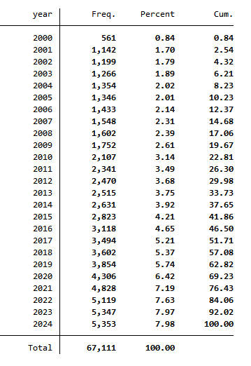 文件格式:Dta格式(使用Stata打开)、Xlsx格式(使用Excel打开)