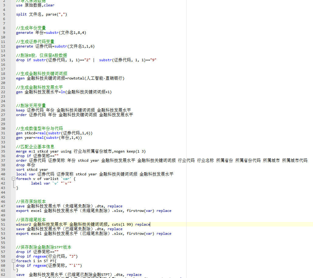本资料所使用的词频原始数据为使用Python对上市公司年报进行文本分析后获得(jieba分词,停用词表使用哈工大停用词表),后续使用Stata进行整理,最终形成面板数据形式。