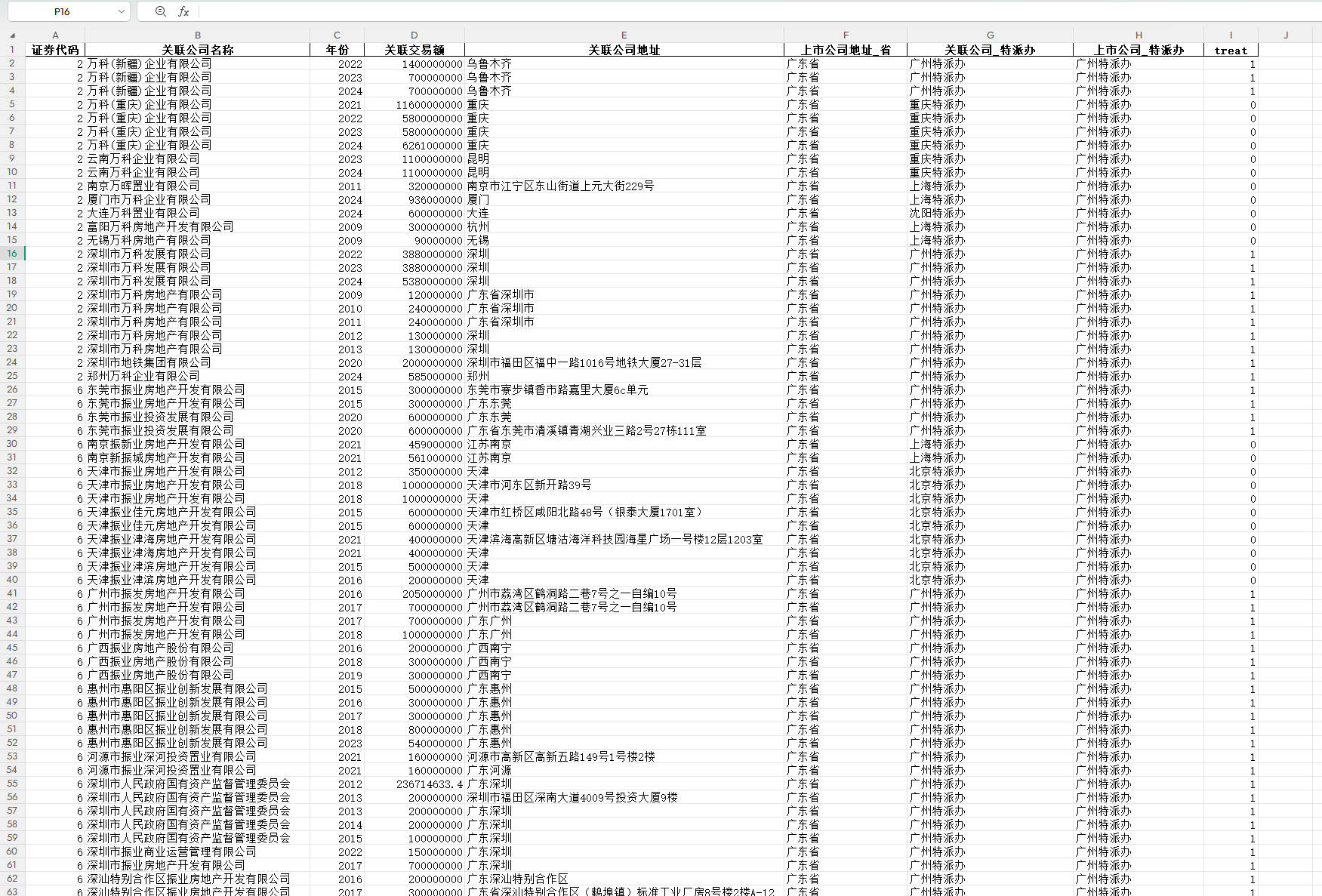 本数据核心来源为1997-2024年中国A股上市公司"关联交易基本情况"和"关联公司基本文件"两类基础数据。数据构建过程严格遵循"关联关系匹配-交易数据汇总-管辖属性判定-分组标识赋值"的标准化流程:首先基于"关联交易基本情况"中的交易双方信息与"关联公司基本文件"中的股权层级信息,精准匹配得到母公司与子公司对应的"公司对"核心样本,明确样本的关联主体边界;随后以年份为维度,对同一"公司对"各年度内的关联交易额进行汇总,形成年度关联交易总额指标;最后依据国家税务总局公布的各税务特派办管辖省份清单,核查"公司对"中母公司与子公司各自所在省份的管辖归属,若两家公司所属省份属于同一个税务特派办的管辖范围,则将该样本标识为处理组(treat=1),若两家公司所属省份不在同一个税务特派办的管辖范围,则标识为控制组(treat=0),最终形成包含"公司对-年份-交易金额-分组标识"的面板数据体系,完整呈现1997-2024年各上市公司关联交易样本的税务管辖分组特征。