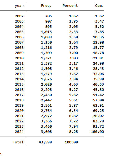 文件格式:Dta格式(使用Stata打开)、Xlsx格式(使用Excel打开)