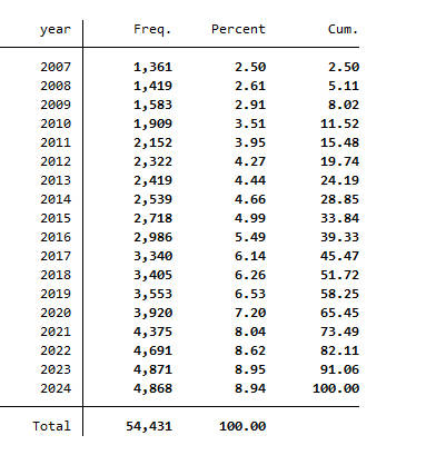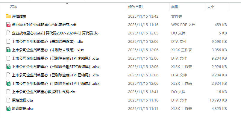 文件格式:Dta格式(使用Stata打开)、Xlsx格式(使用Excel打开)