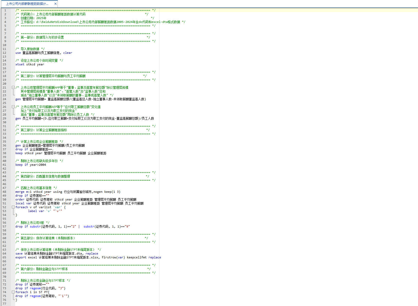注:提供了剔除所需数据和剔除代码,若无需做该项剔除处理,自行删除相关代码重新运行即可行业参照证监会2012年行业分类标准,制造业用二级行业分类,其他用一级分类来计算并对连续型变量进行了1%和99%分位数的缩尾处理