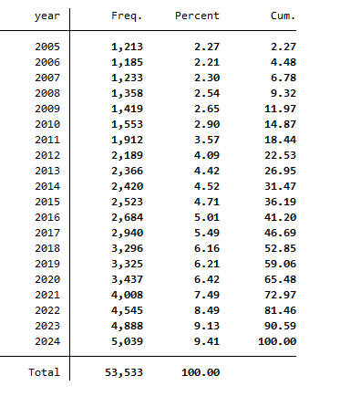 文件格式:Dta格式(使用Stata打开)、Xlsx格式(使用Excel打开