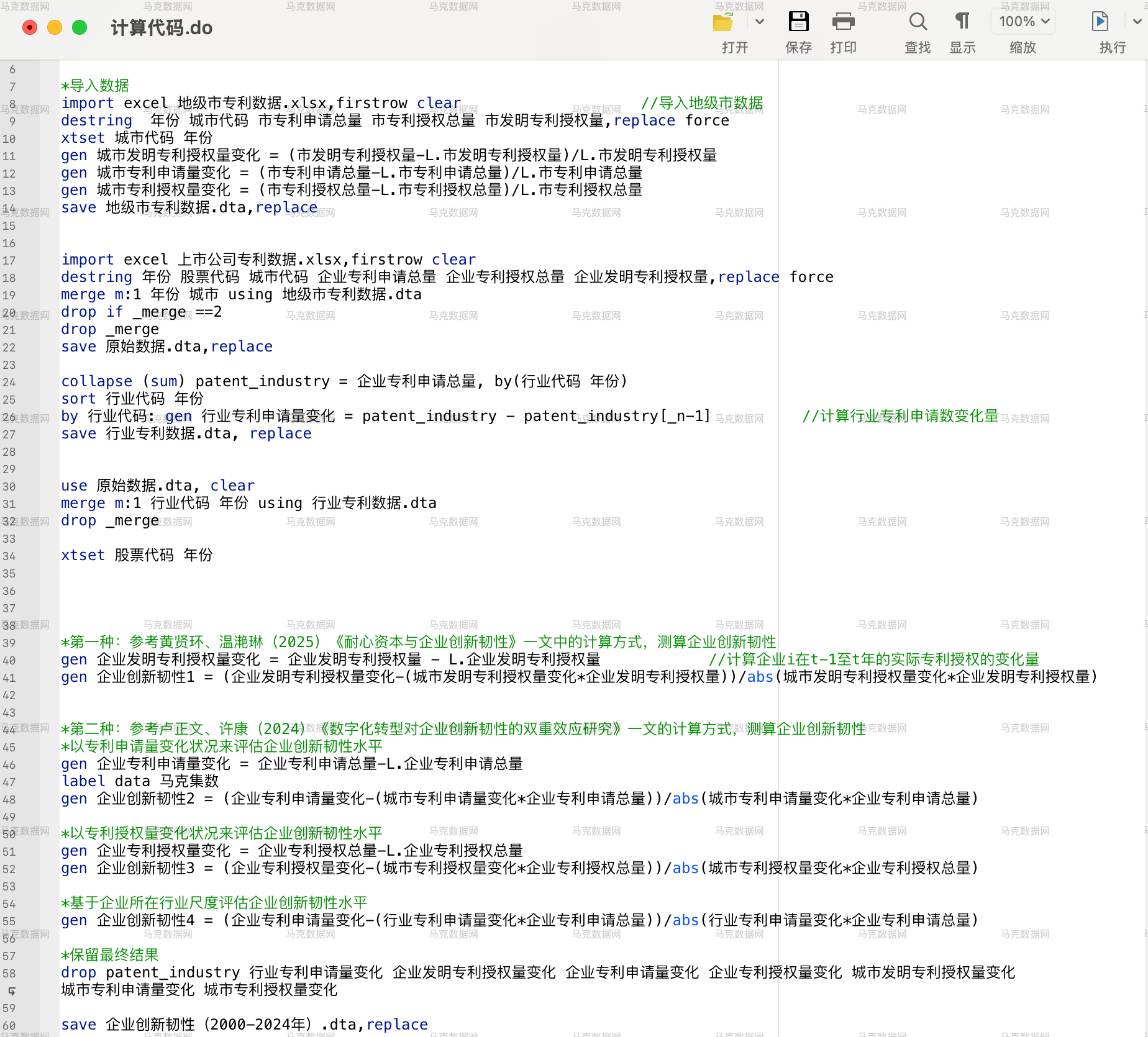 3. 指标构建与测算公式:为了全面反映不同视角下的创新韧性,我们分别提供了基于专利申请量、专利授权量、企业所在行业尺度(参考卢正文等,2024)和发明专利授权量(参考黄贤环等,2025)的测算数据。具体计算过程如下: