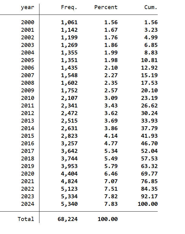 文件格式:Dta格式(使用Stata打开)、Xlsx格式(使用Excel打开)