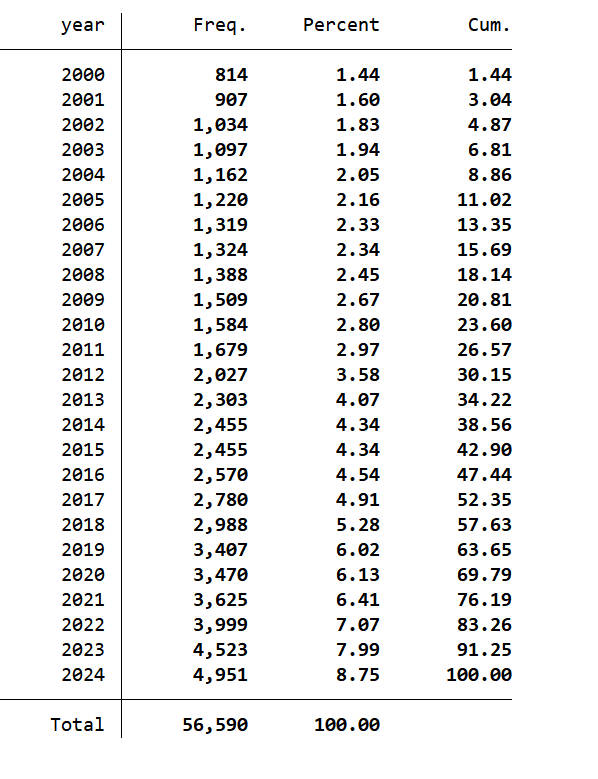 文件格式:Dta格式(使用Stata打开)、Xlsx格式(使用Excel打开)