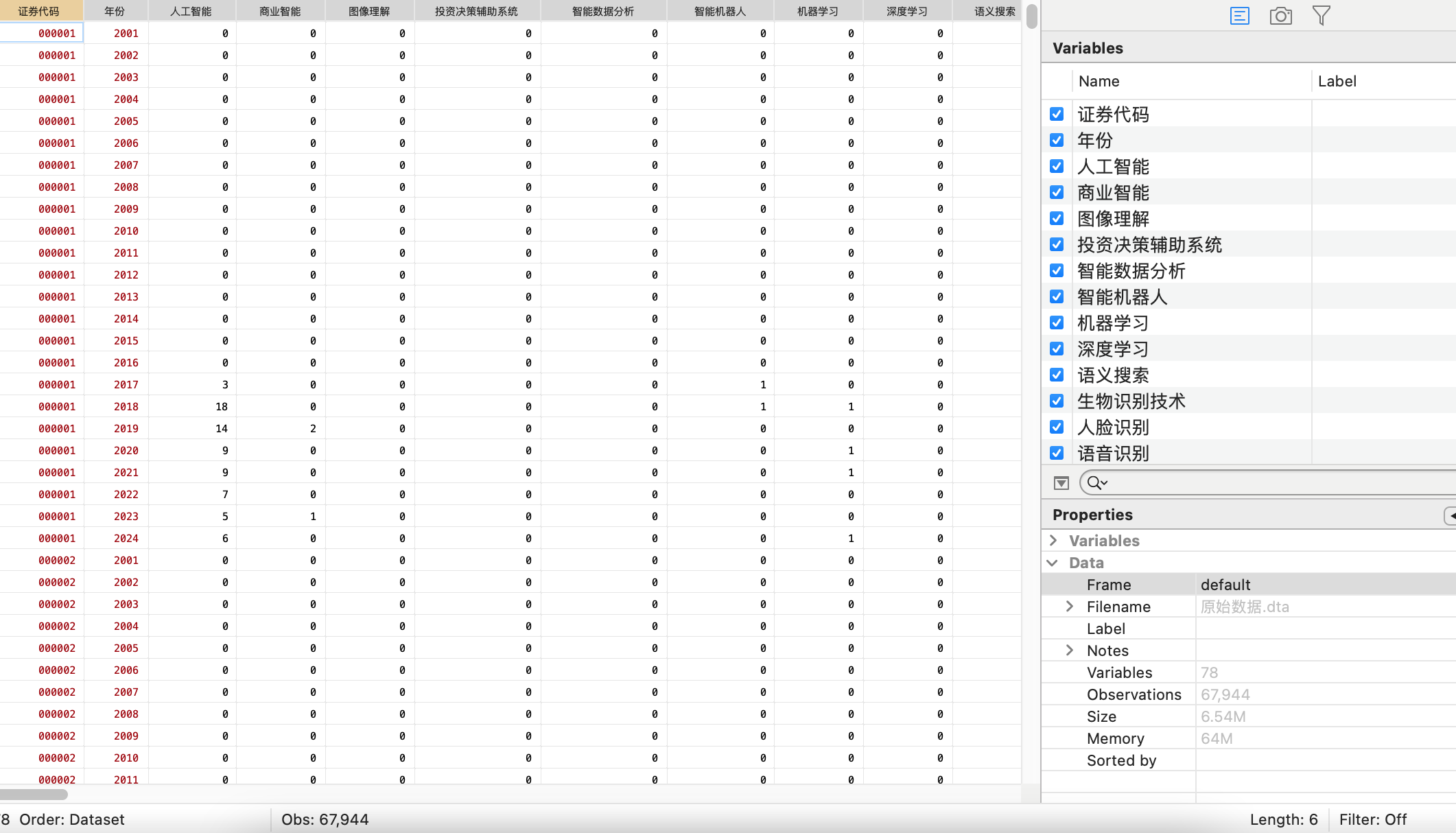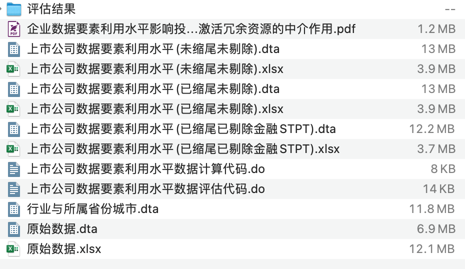 文件格式:Dta格式(使用Stata打开)、Xlsx格式(使用Excel打开)