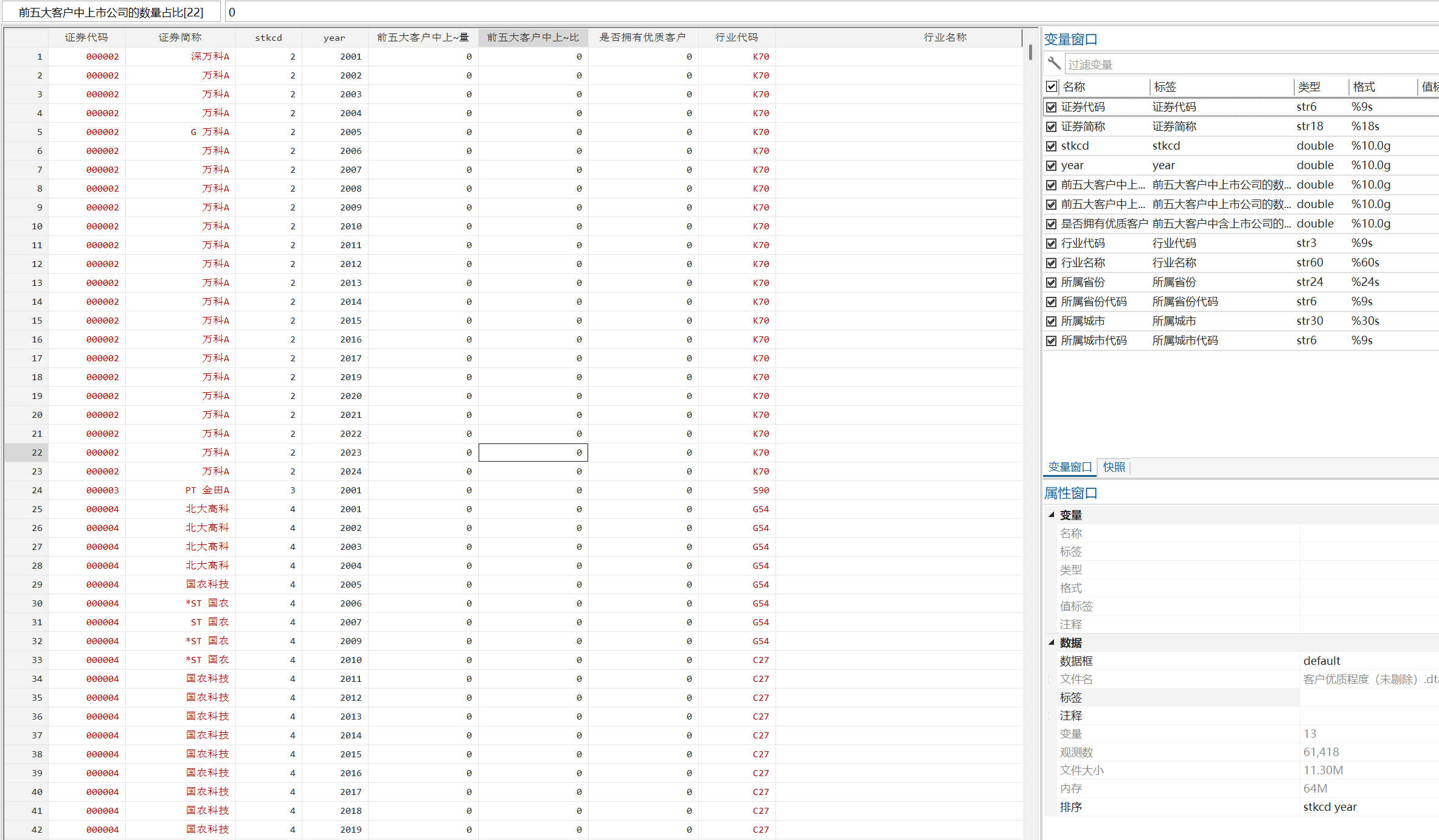 复刻了2022年《经济管理》中关于优质客户的变量,如果客户是上市公司则认为是优质客户