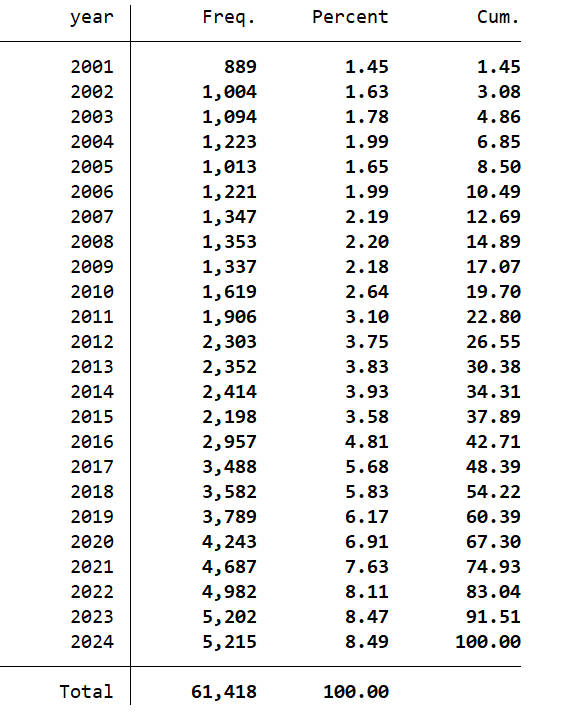 本文剔除金融行业,剔除当年IPO及上市以前的数据,剔除已退市的上市公司,如果不需要剔除可以把对应代码删掉即可