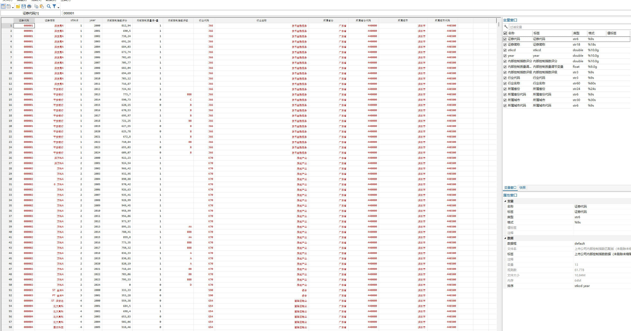 【内部控制指数评分】使用构建的内部控制指数衡量上市公司的内部控制质量,该指数越大,内部控制质量越高。原始数据存在部分值为0,未作修改。