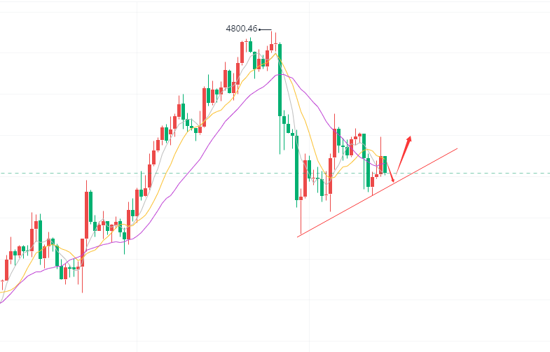 从黄金小时图来看,随着早盘开盘下挫,下方4614正好形成短线上升趋势支撑。也就是说,在4614之上偏向于延续反弹势头。失守4614则行情不排除将继续测试10日均线支撑4550的可能。
