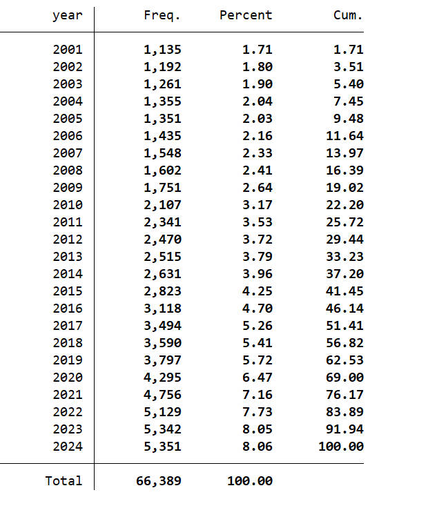 文件格式:Dta格式(使用Stata打开)、Xlsx格式(使用Excel打开)