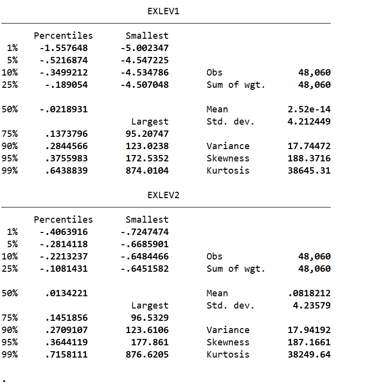 【EXLEV1】按照参考文献中的模型对样本分年度分行业进行Tobit回归,计算企亚的目标负债率。过度负债EXLEV1为企业实际负债率减去模型计算出来的目标负债率