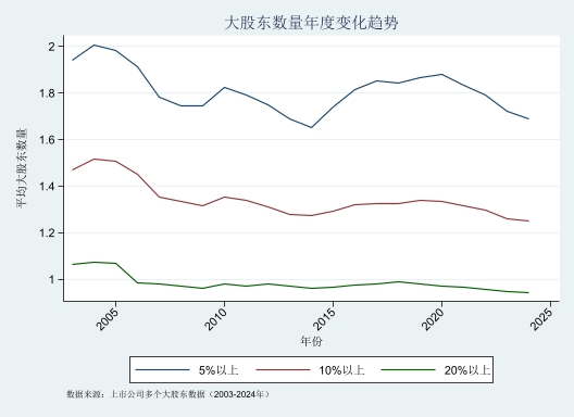 【大股东数量(持股比例百分之五以上)】把持股比例超过5%的股东定义为大股东并计算大股东数量已把作为一致行动人的股东的持股比例合并计算为一人股东)。