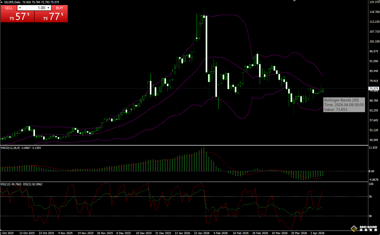 实战中,伦敦银技术指标搭配使用效果更佳:MACD判断趋势与动能,RSI确认超买超卖、捕捉反转,布林带划定波动区间、定位进出场点位。在实际交易的过程中,投资者可以把三者结合,通过趋势、时机、点位三重确认,大幅提升信号可靠性,而且这样的做法在震荡与趋势行情中同样适用。