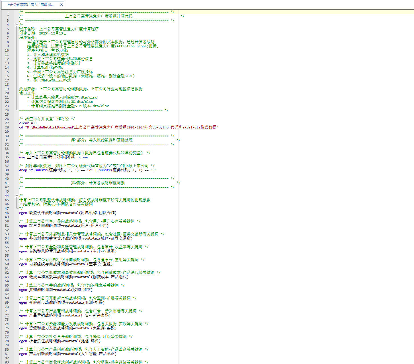 - 上市公司高管注意力广度数据计算代码.do - Stata计算代码
