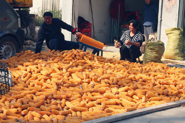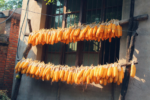 撕好的玉米棒子也不在需要在社场上晾晒,直接在自家的院子里和平房上晾晒就可以了,既方便又干净。