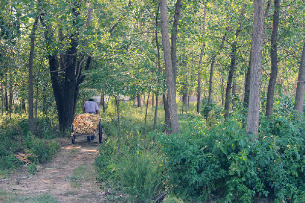 但是,田地里的土壤太软,每每装满车子后,需要全家人的力气把它推到田头的路上,然后才能顺利的拉回家。
