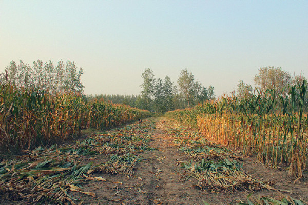 这样做不仅能让掰玉米时前行的速度加快,同时也不至于让繁茂的叶子划破自己的身体。