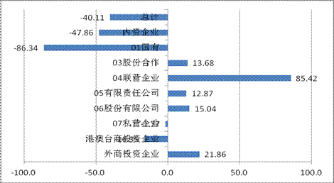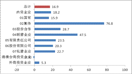 从登记注册类型看,内资企业主营业务利润比上年下降47.9%;港澳台商投资企业下降16.4%;而外商投资企业增长21.9%。在内资企业中,国有企业比上年下降86.4%;股份合作企业增长13.7%;有限责任公司增长12.9%;私营企业下降1.2%。与内资及港澳台商投资企业相比,外商投资企业虽主营业务收入增幅回落,但成本等各因素控制相对有效,主营业务利润实现较快增长。