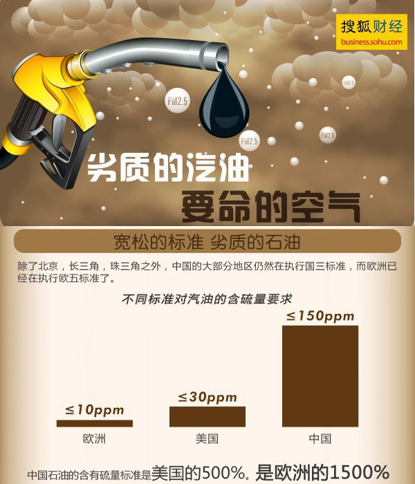[提要]搜狐财经报道《劣质的汽油 要命的空气》在新浪微博等各大社交媒体平台引起巨大反响,被转发传播数十万,引爆对国内油品质量的拷问与思考,随着我们的继续关注以及国内外各大媒体的跟进,中石化董事长傅成玉做出公开回应,承认炼油企业是雾霾天气直接责任者之一,但这并非因油企质量不达标,而是中国标准不够。2月6日,国务院召开常务会议,决定加快油品质量升级。搜狐财经制图。[网友有话说][更多精彩内容]