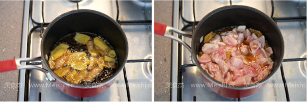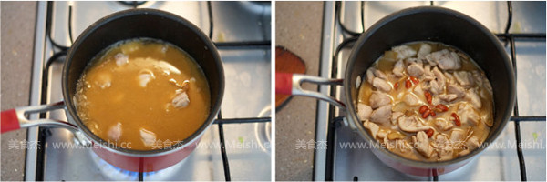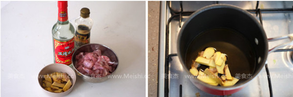将所需材料准备好 锅里倒入一小碗麻油,开小火,油热后放入姜片,继续小火爆香,多爆一会儿,直到姜片略微有些干 倒入鸡块,翻炒 鸡肉变白以后倒入米酒,没过鸡肉 大火煮开后,转小火,盖上盖子炖大约20分钟,直到鸡肉软烂,加入枸杞 关火后焖10分钟,风味更好 |