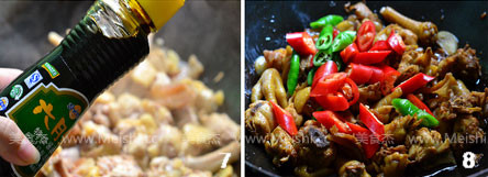 2、由于是嫩鸡,炒制时有了足量的酱油和黄酒,不需要另行放水。