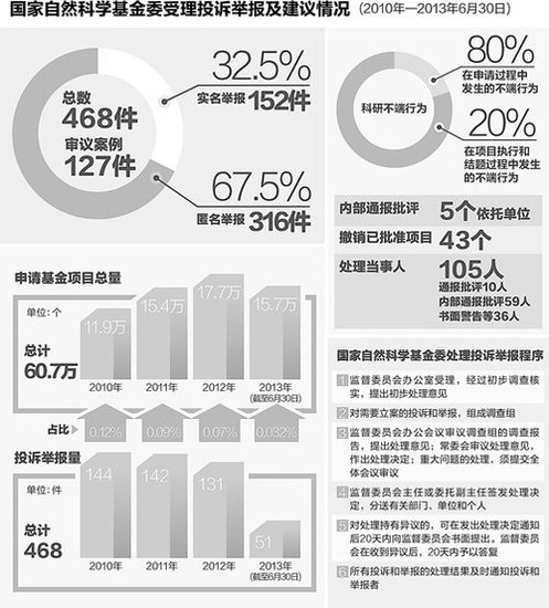 8月1日,国家自然科学基金委员会(以下简称基金委)通报了2010年以来基金委监督委员会受理科研不端行为投诉举报以及处理情况,并首次公布了6个典型案例。举报数量基本稳定,基金委一年内公开所有结题项目信息
