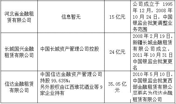 3,由于一些历史原因,2007前成立的一些带有"金融租赁公司"头衔的租赁公司,如恒信金融租赁公司、四川金融租赁公司、新世纪金融租赁有限责任公司、深圳金融租赁有限公司等,至今仍未顺利过渡到中国银监会监管序列。