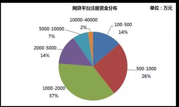 融360重点监测的网贷平台注册资金分布在100万元到4亿元之间,平安集团旗下陆金所以4亿注册资金居首,所有网贷平台平均注册资金是2,370万元,其中500万元至2,000万元的居多,占全部网贷平台的63%。