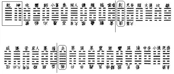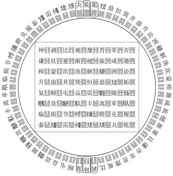 (乾坤)据“天地定位”原则,其首卦对为“乾坤”,象征天道;以乾为首,一方面是为了反《归藏易》以坤为首的传统,另一方面是为了凸显尊父敬祖的内涵。