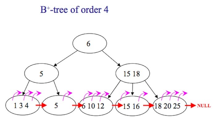 为什么会这样?在MySQL中,索引通常是b-tree方式(但存储引擎如InnoDB实际是b+tree),如图
