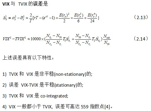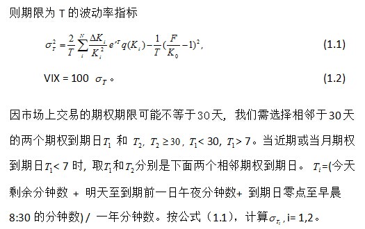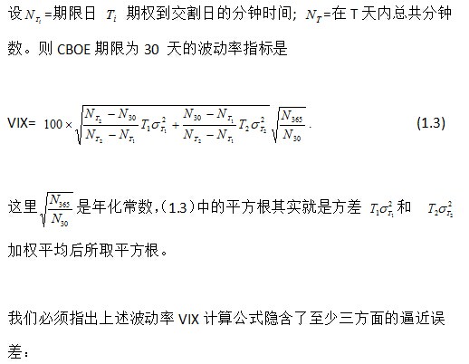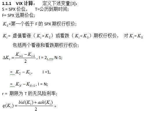 1.1 波动率指标VIX:随着标普500指标(SPX)期权交易量的不断增大,其对应的不同行权价和不同到期日期权隐含波动率一定程度上反映了市场上对SPX今后变化的期望。用这些隐含波动率导出一个波动率指标有利于度量这种市场上的期望,也是波动率交易中一重要工具。VIX是CBOE于1993年引进的波动率指标,2003年经修改后依据SPX期权度量今后30天市场期望波动率, 也称之为“恐惧指标”(fear index)。