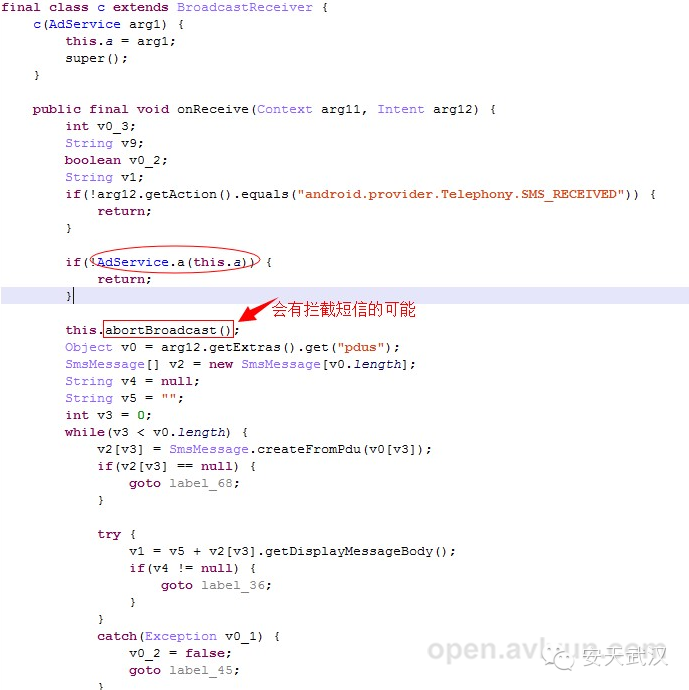 Adtraffic广告可能会在收件箱插入垃圾短信,后台发送短信,拦截短信。 详细代码截图如下: