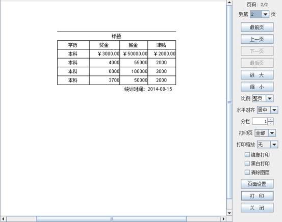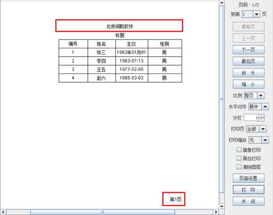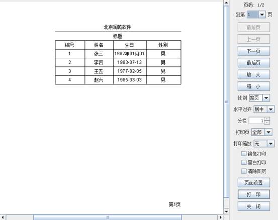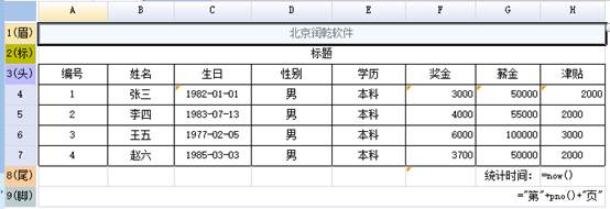 下面使用横向分页报表举例说明,报表如下图所示