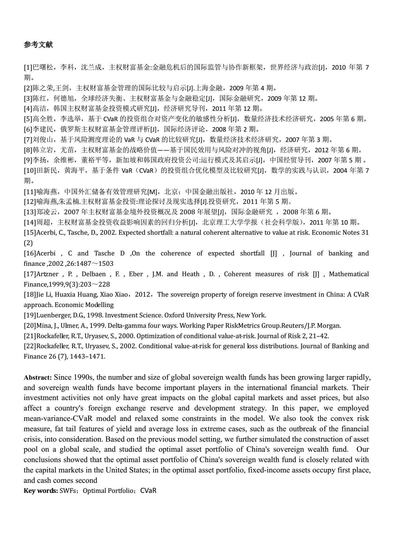 [论文大赛] 中国主权财富基金投资策略:基于均值-方差-CVaR模型 |