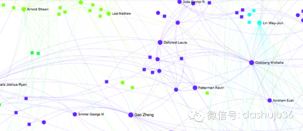 上图表明,苹果的所有科技发明都是由特定的一群发明人员和相关科技组成,这一点很容易辨认。左上方浅蓝色的一簇由苹果的工业设计团队组成,领头人是乔纳森·艾夫(Jonathan Ive);底下的一簇都是和移动设备部件相关的专利和发明人员。史蒂夫·乔布斯是连接这个网络左右两边的关键人物,他将右边深蓝色的一簇(这一簇包括所有和用户界面、操作系统相关的专利)和移动设备设计这一簇连了起来。右边红色这一簇大多属于iTunes的领域,而最右边紫色的一小簇由数据加密与安全的苹果专家和专利组成。