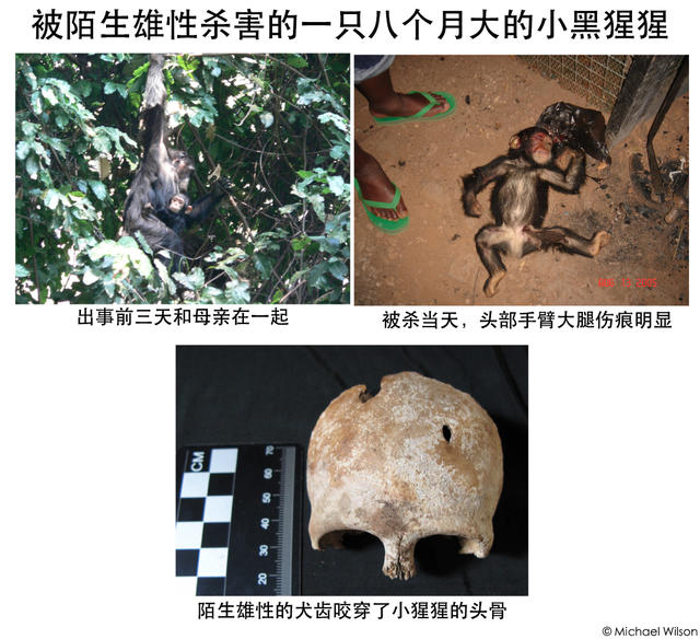 惨遭陌生雄性杀害的小黑猩猩。图片来源:Michael Wilson