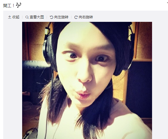 晚上7点左右,范玮琪上传一张戴着耳机嘟嘴搞怪的照片,并留言道“开工”,似乎是开始了新歌的录制。网友们都对范玮琪的归来表示了热烈欢迎,“这么快就开始挣奶粉钱了”。不过也有眼尖的网友发现,“这张照片怎么好像何炅”。