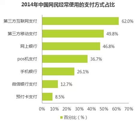 艾瑞咨询认为,第三方支付和网银的网民覆盖率均超过了经常使用pos机支付的网民覆盖率,原因一方面是电子渠道支付无关地区对支付基础设施布设的发达程度,使得支付行为下沉到乡镇村,从而扩展了用户覆盖;另一方面,智能终端和互联网的普及也使得网民的支付行为向电子渠道迁移。