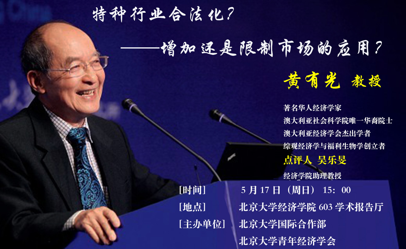 名师简介:黄有光先生为世界级的著名华人经济学家,1942年生于马来西亚,1971年获悉尼大学经济学博士学位,长期任澳大利亚Monash大学经济学教授(1974-2012),2013年起为该校荣休教授,现任新加坡南洋理工大学经济系Winsemius讲座教授。1980年当选为澳大利亚社会科学院院士。2007年获得澳大利亚经济学会最高荣誉—杰出学者。在国际顶级的经济学、哲学、生物学、心理学、社会学、数学、宇宙学等领域学术期刊(包括AER,Economica, EJ, JET, JPE, RES, SCW)发表两百余篇审稿论文,对经济学理论特别是福祉经济学作出了突出性贡献。兴趣与贡献包括:中国经济问题,福祉经济学与公共政策,提创福祉生物学、以及综合微观、宏观与全局均衡的综观分析,与杨小凯合作发展以现代数理方法分析古典的分工、专业化与经济组织的新兴古典经济学。