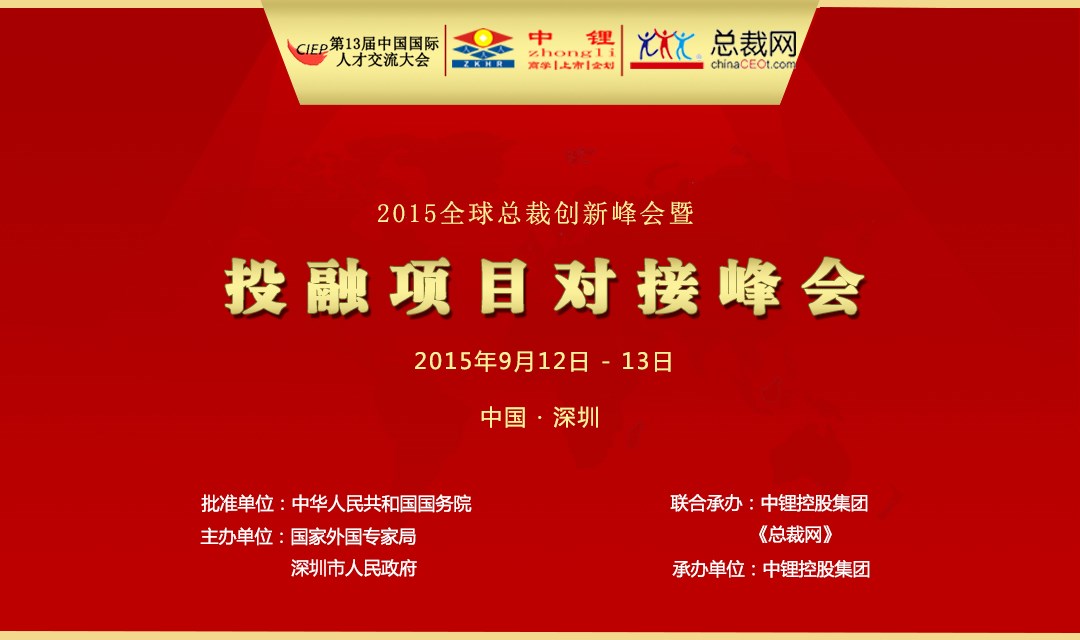 活动主题 《2015全球总裁创新峰会暨投融项目对接峰会》