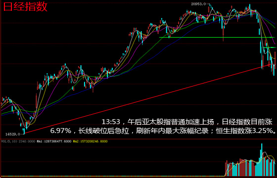 9:57,亚太股市探低后不同程度走高,沪指跌幅收窄至2.06%,日经指数涨1.5%,恒生指数跌幅收窄至0.8%。