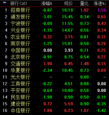 13:16,沪指跌幅收窄至1.86%,中信银行[0.16% 资金 研报]直线拉升2%,银行股普遍反弹。