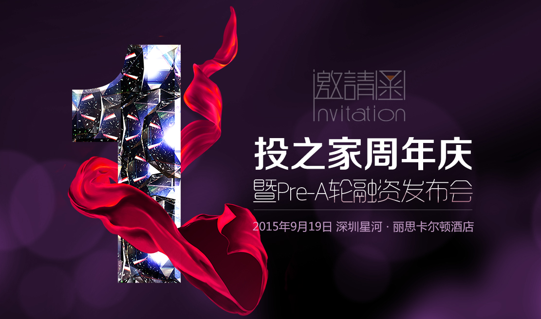 尊敬的朋友: 9月19日,投之家将假座深圳丽思卡尔顿酒店,举行一场盛大的周年庆暨Pre-A轮融资发布会活动,届时政府领导、行业大佬、主流媒体都将齐聚一堂,共享喜悦。